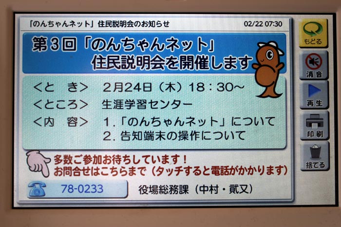 村内でのんちゃんネットの工事再開などが広報に載りました。